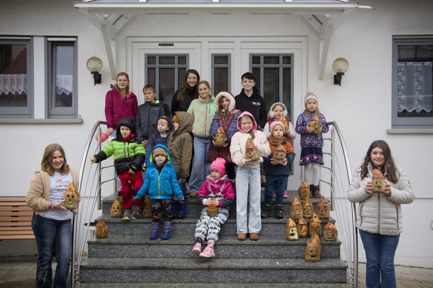 Am 25. Oktober 2025 fand wieder das traditionelle Dickworzschnitzen, wie fast immer, im Hof der Familie Kilb in der Eppsteiner Straße statt. Leider war das Wetter dieses Jahr nicht das Schönste. Trotzdem fanden sich um 14 h schon zahlreiche Schnitzwütige ein. Mit großem Eifer schnappte man sich die Messer und Löffel zum Aushöhlen und Ausschneiden der Gesichter. Jeder Dickworz ist immer ein Unikat. Und mit der eigen entworfenen Gestaltung dann auch immer einzigartig. Sogar ein Gusbacher Tännchen wurde geshnitzt. Natürlich waren auch einige Eltern und Großeltern zur Unterstützung mit dabei, die ebenfalls ihren Spass daran hatten. Zur Stärkung und zum Aufwärmen gab es Frankfurter Würstchen, warmen Orangensaft und Kaffee.